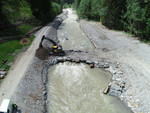 Dabei kam es auch zu einer Absenkung der Landesstraße auf einem ca. 100 m langen Abschnitt, bei der auch die talseitige Stützmauer vollständig zerstört wurde.