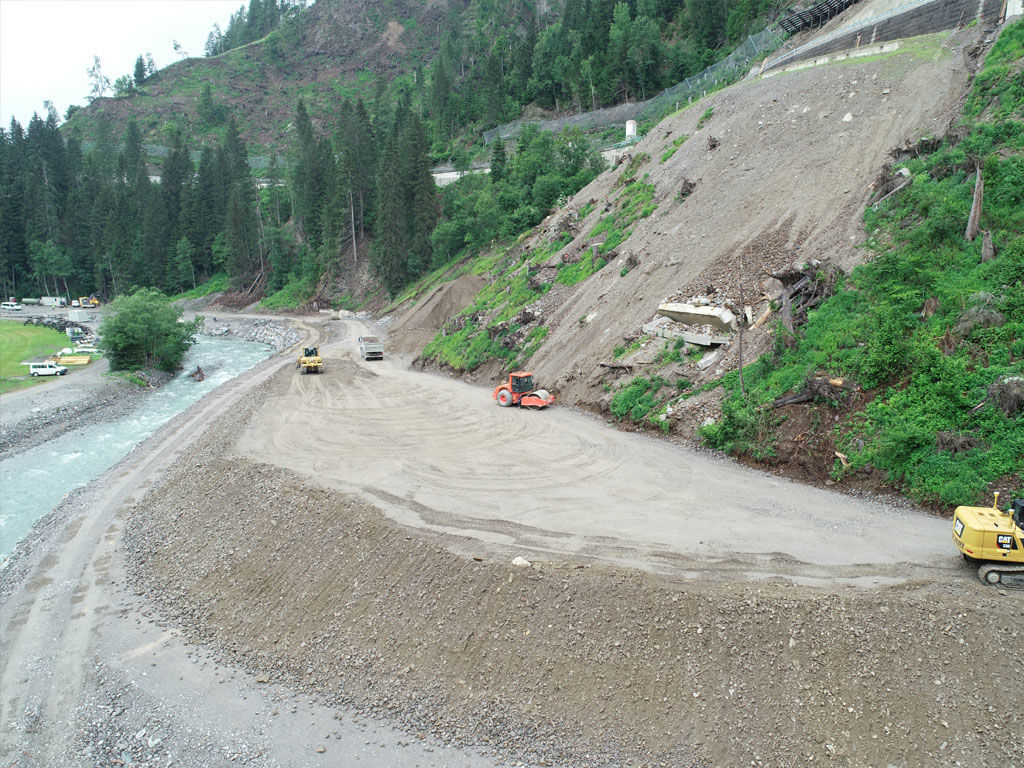 In diesem Zusammenhang erfolgt die Sanierung der Landesstraße mit Hilfe einer lokalen Hangsicherung.